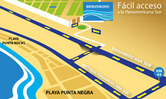 Ubicado exactamente en el kilómetro 44.7 de la Panamericana Sur, a la altura de los balnearios de San Bartolo y Punta Negra, a tan solo 25 minutos de Lima.